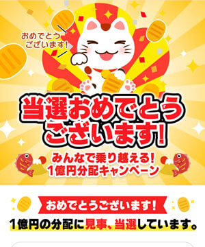 総額1億円分の当選金だそうで金額は「分配を受け取る」ボタンをクリックして確認してくださいとのこと。