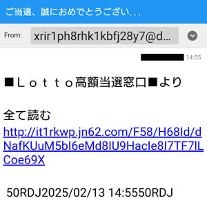 文面からすると当選金詐欺サイトからのメールのようです。