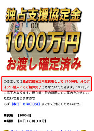 メールの内容はというと「独占支援協定」を結ぶことで支援を行いますよという内容です(笑