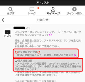 連絡先交換も自由にできると書かれていますが、ポイント購入実績がない場合は交換できないとのこと。