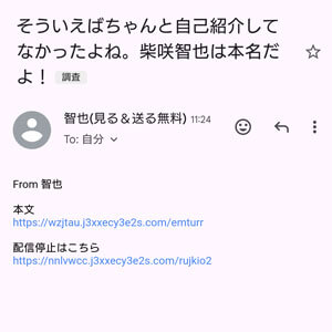 「そういえばちゃんと自己紹介してなかったよね。 柴咲智也は本名だよ」と書かれていることからも何度かメールを送ってきていることが分かります。