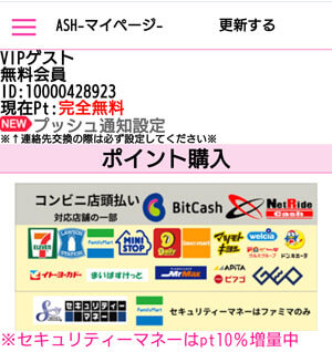 「本会員」…3000円以上のポイントを追加する事により、本会員となる事ができます。本会員限定の各種ポイント増量イベントの案内があった際に参加する事ができます。