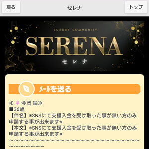 差出人が「セレナ」となっているのでサイト名は「セレナ」だと思われます。