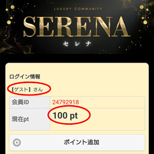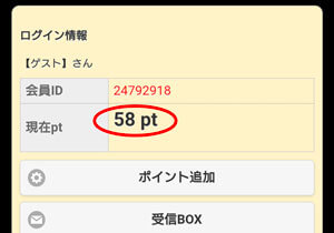 私の登録名は「ゲスト」になっており、所有ポイントは100pt あります。