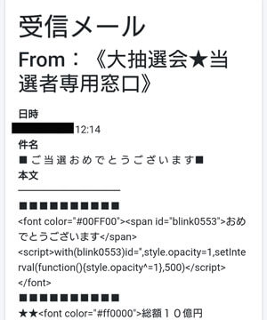 予想通り当選金詐欺サイトのようで3億円が当選したとのメールでした。