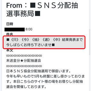 こちらのご案内は高額現金当選者全員に配信させて頂いております。