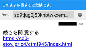 「このまま放置すると危険です」と危険を煽ってメールを開封させるという悪徳サイトの典型的なメールです。