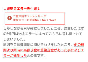 二重送金ということで送金エラーが発生したということで「再送金」するとのことです。