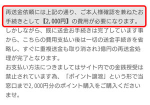 再送金依頼の手続き費用として2000円が必要になるそうです。