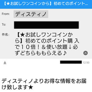 メールの内容は500円分のポイントを購入することでサイト使い放題、ポイント10倍になるといったキャンペーンメールのようです。