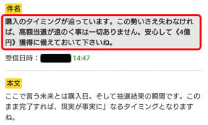 ロトの購入のタイミングが迫ってきたと煽りながら占いを続けさせようという意思が見て取れます。