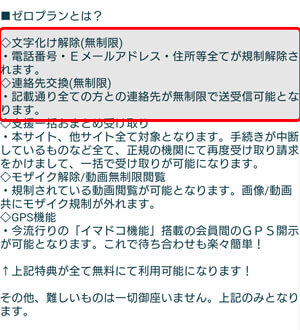 文字化け解除や連絡先交換が無料になるということが書かれています。