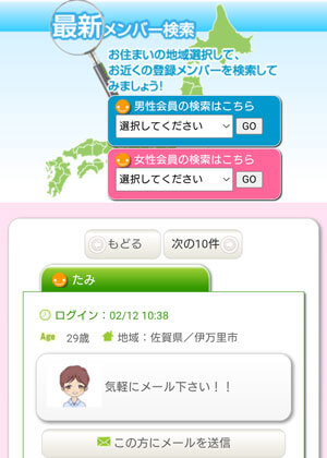 地域と検索する性別を選ぶと多くの女性が検索されます。