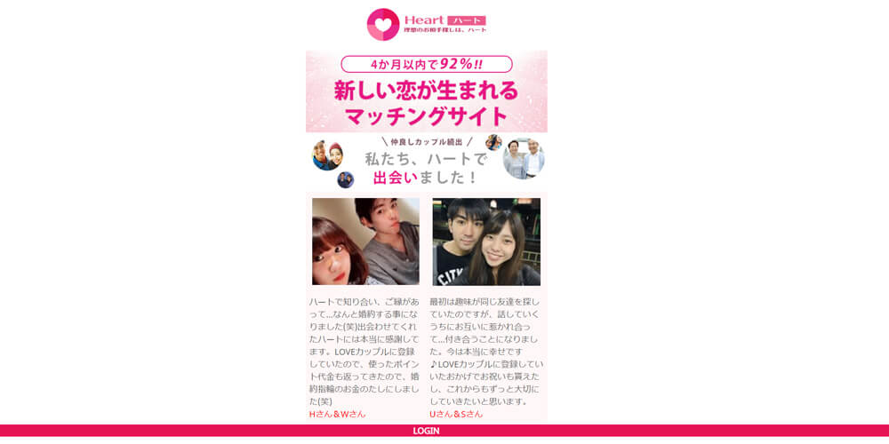 ロゴは「Heart Second」と書かれていますがタブは「ハート」と書かれており、サイト名はハートの模様。