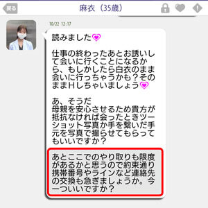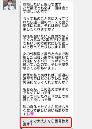しかも、電話番後については切れずに「ここまで大丈夫なら番号おしえます」とのメッセージ。