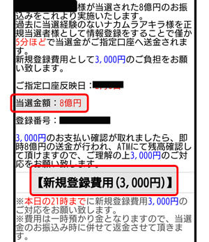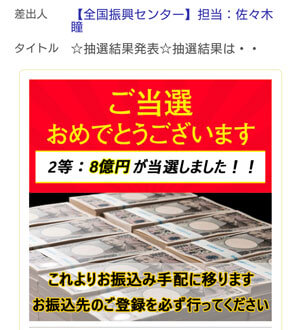 この手の当選金詐欺はほとんど2等が当選します (笑