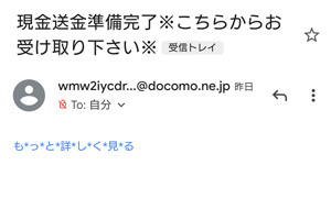 「入金通知」 と書かれている事からも支援金詐欺サイトからのメールが濃厚です。