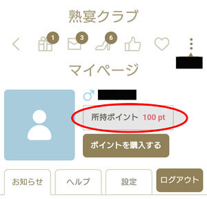 登録直後のマイページがコチラになりますが、所有ポイントは100ptあります。