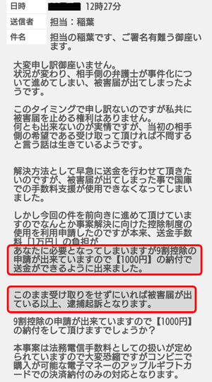 単に脅して1000円をだまし取るといった詐欺手法です。