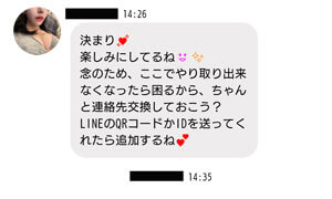 連絡先を交換したいということでLINEのQRを送って欲しいとのことでした。