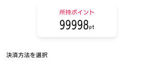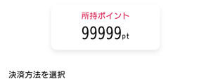 ポイントは「99,999pt」ありますが、おそらく見かけだけでポイント数は無いものと同じだと思われます。