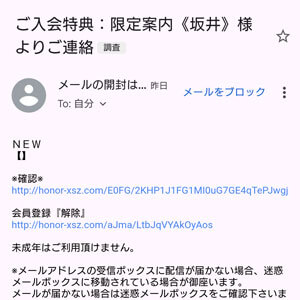 「入会特典」と書かれていることからもどこかのサイトに勝手に登録されたようです。