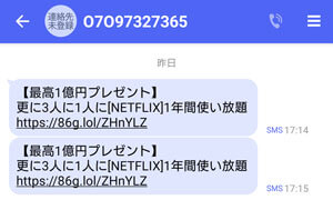 スマホのSMSにこのようなメッセージが届きました。