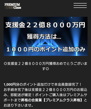 実際には22億8000万円の支援金をエサに有料の会員ランク昇格を迫るサイトのようですね。