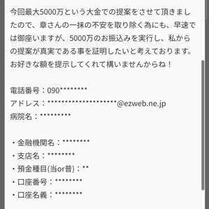5000万円ほど自由に使える金額として用意していますので、あなたの好きな金額をご提示頂ければ、謝礼としてしっかりお渡しさせて頂きます。
