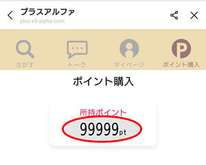 現状無料で利用できるとのことでポイント表記が99999pt となっていると書いていますが、ポイントは何処なのかと確認してみると「ポイント購入」のなかにありました。