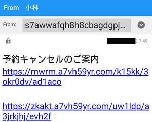 「予約キャンセルのご案内」と書かれあとはURLのみとメールで内容を伝えないのは悪徳サイトが良く使う手法です。