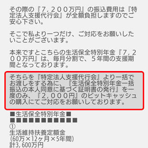 私たちは昨今の社会情勢の悪化に伴いまして、【NPO 安定年金組合】という団体から生活保全特別年金の振込依頼を受けたことで、今回あなた様へご連絡させていただきました。