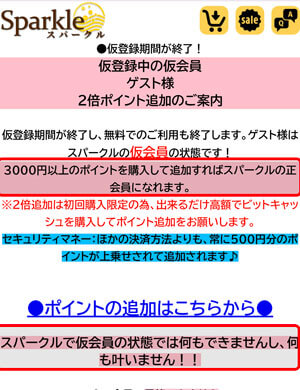 現状、私は「仮会員」であるために3000円分のポイントを購入して「正会員」になりましょうということです。