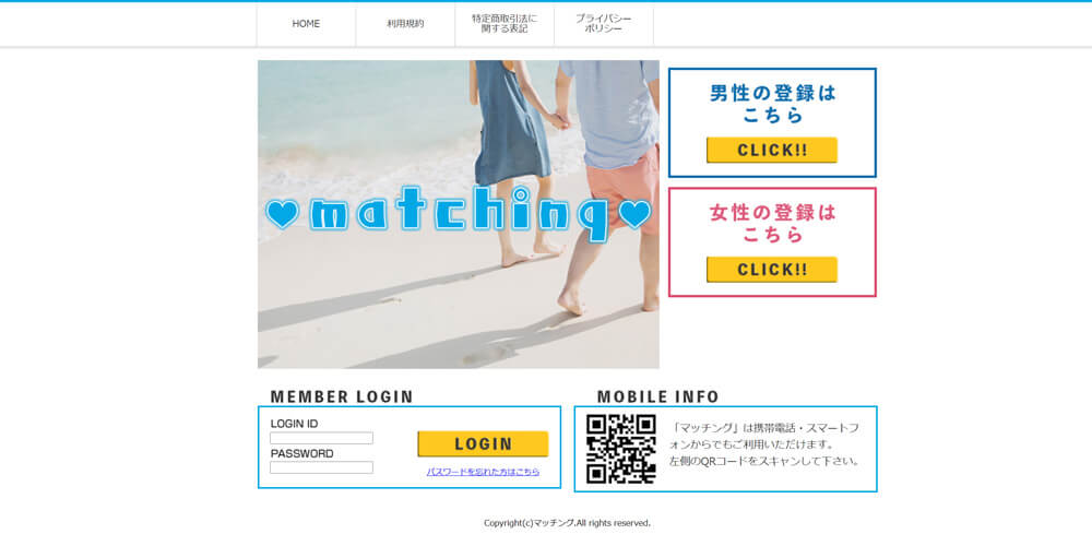 「マッチング」というサイト名のサイトは、5,6サイト程度確認しており、悪徳業者が付けがちなサイト名であるようです。