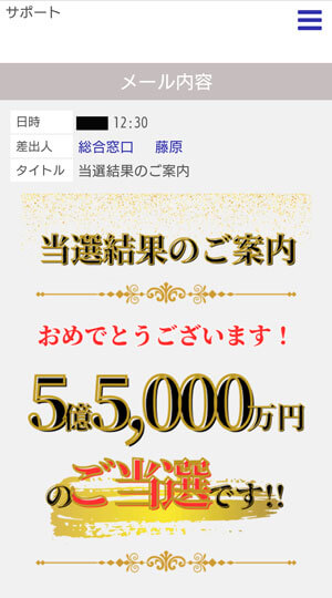 メッセージの内容というと5億5000万円が当選したとのこと(笑