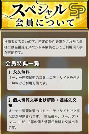 会員特典として「個人情報の文字化け解除」や「ポイント換金」が書かれており、どうやら「スペシャル会員」にならないとポイント換金が出来ないようです。